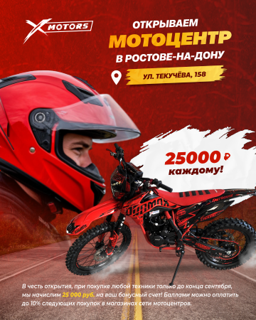 Наша цель - дать возможность жителям всей России заниматься активным мотоспортом. Мы предлагаем недорогую мототехнику. Наши квадроциклы, мотоциклы, багги и другие товары может купить практически каждый.В "X-MOTORS" работают лучшие в своем деле. А если у новичка нет опыта, но есть желание расти и обучаться, мы сделаем из него профессионала.