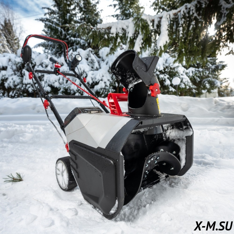 Оснащен практичным светодиодным прожектором, что позволяет чистить площадку от снега в любое время суток.