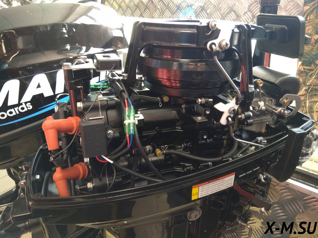 MP 40 AERTL: Лодочный мотор Marlin Outboards, двухтактный, 40 лошадиных сил, электрический запуск двигателя, дистанционное управление, гидропривод, длинная нога (дейдвуд).